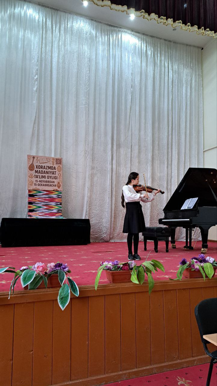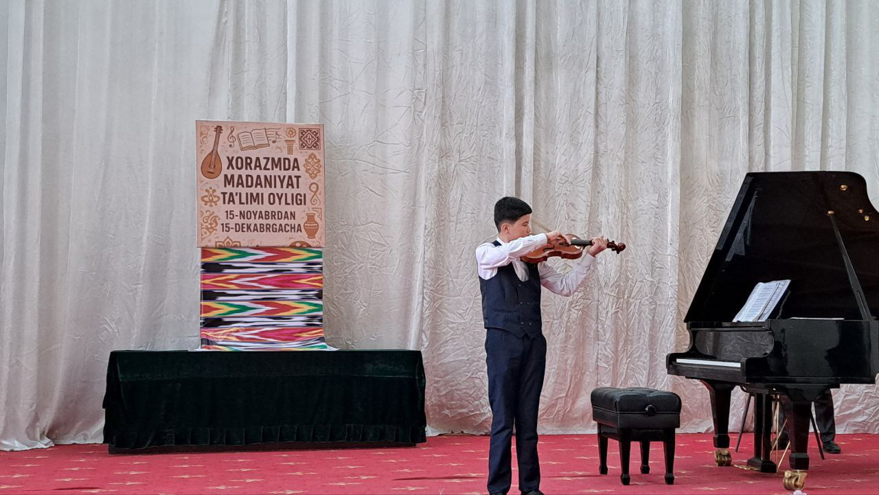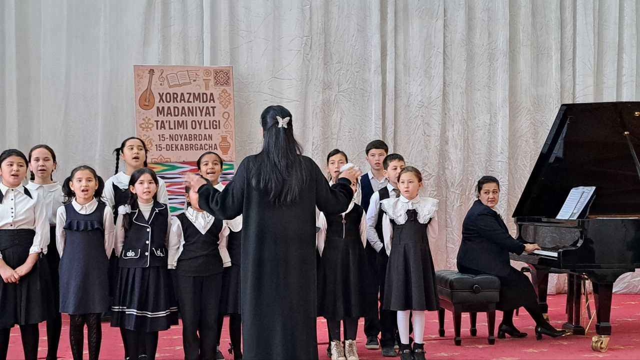 Xorazm viloyati Madaniyat boshqarmasi boshlig`i G`Eshchanovning 2025-yil 14-noyabrdagi 72-son buyrug`i bilan "Xorazmda Madaniyat ta`limi oyligi"ni o`tkazish doirasida 2025-yil 24-noyabr kuni Yangibozor tuman 16-son Bolalar musiqa va san`at maktabi fortepiano va torli cholg`ular bo`limi xamda xo`r sinfi o`quvchilarining konsert dasturi namoyish qilindi.