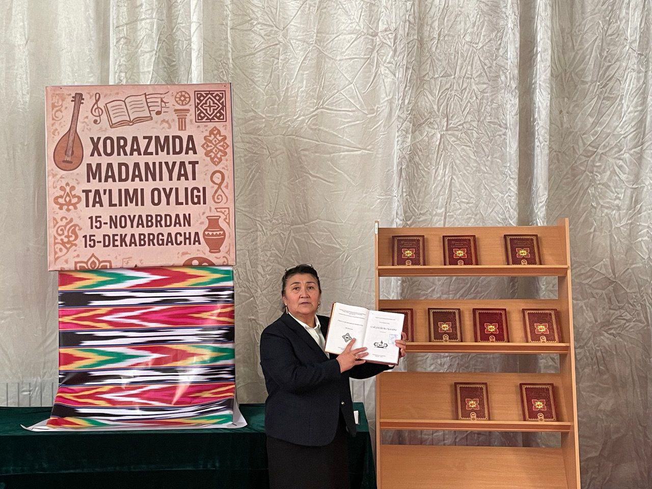 Xorazm viloyati Madaniyat boshqarmasi boshlig`i G` Eshchanovning 2025-yil 14-noyabrdagi 72-son buyrug`i bilan "Xorazmda Madaniyat talimi oyligi"ni o`tkazish doirasida 2025-yil 2 dekabr kuni Yangibozor tuman 16-sonli Bolalar musiqa va san`at maktabi kutubxonasi tomonidan "O`zbek Xalq ijodi yodgorliklari" kitobi yuzasidan kitob taqdimoti o`tkazildi.Taqdimotda ushbu kitobning har bir jildi kitobxonlarga sharxlab berildi.Bu kitoblar taqdimotida maktab o`qituvchi va o`quvchilari ishtirok qildilar.